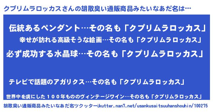 | 料理風あだ名 | 『クプリムラロッカスごはん』 |