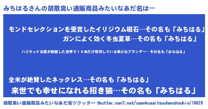 | 意味不明あだ名 | 『住所不定無職みちはる(84歳)』 |