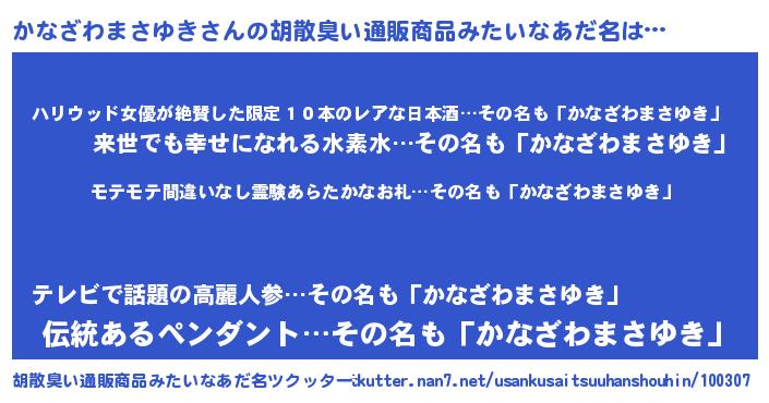 | 女子向けラノベタイトル風あだ名 | 『かなざわまさゆき姫と円卓の騎士』 |