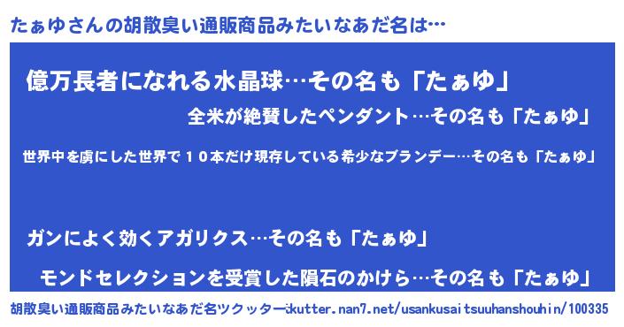| 意味不明あだ名 | 『住所不定無職たぁゆ(93歳)』『自称たぁゆ』 |