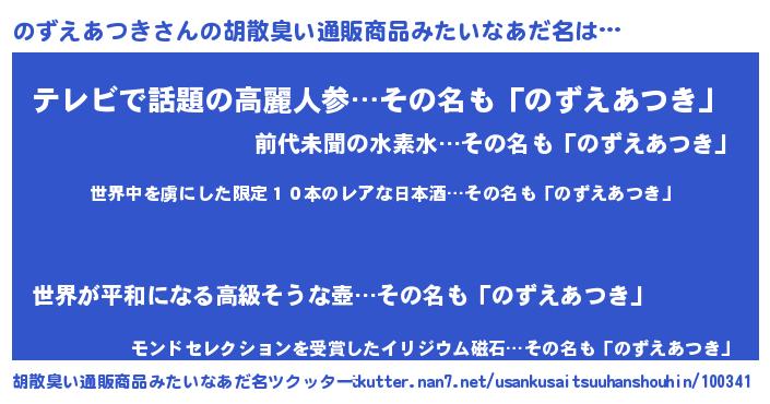 | ヘコむあだ名 | 『のずえあつき(笑)』『なまこ酢』 |