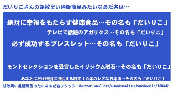 | 意味不明あだ名 | 『ペロリンだいりこ』『永久保存だいりこ』 |