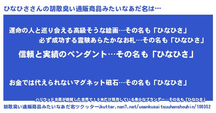 | 男性向けラノベタイトル風あだ名 | 『ダンジョンにひなひさを求めるのは間違っているだろうか』 |