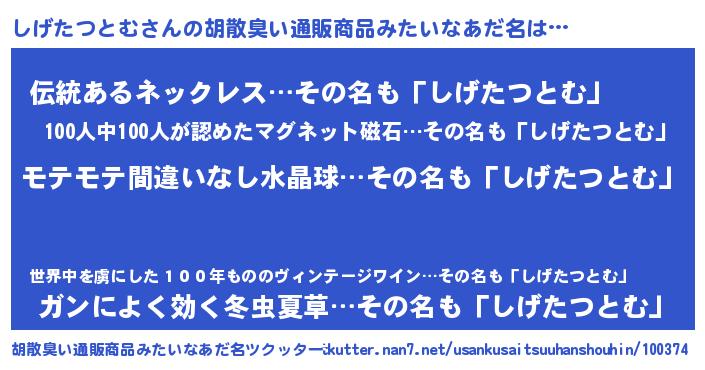 | 男性向けラノベタイトル風あだ名 | 『しげたつとむの憂鬱』 |