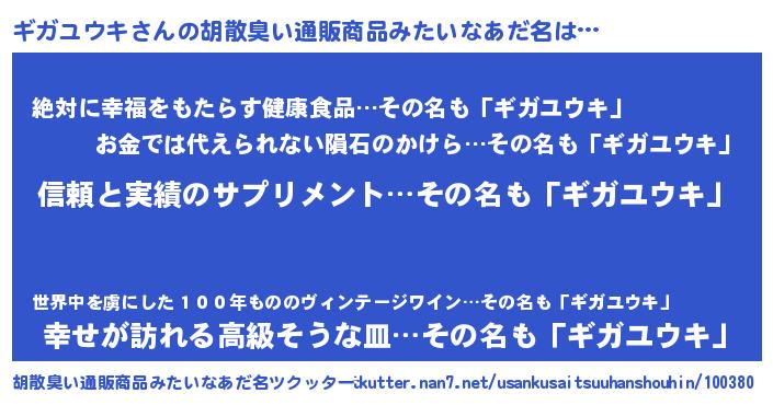 | 意味不明あだ名 | 『とにかく怪しいギガユウキ』 |