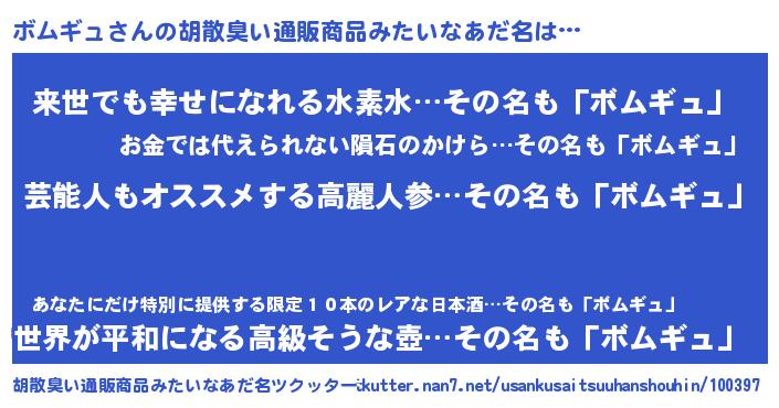 | 意味不明あだ名 | 『自称ボムギュ』『永久保存ボムギュ』 |
