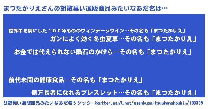| ヘコむあだ名 | 『まつっふぃ~』『まつたかりえ(爆)』 |