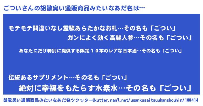 | 意味不明あだ名 | 『住所不定無職ごつい(56歳)』『自称ごつい』 |