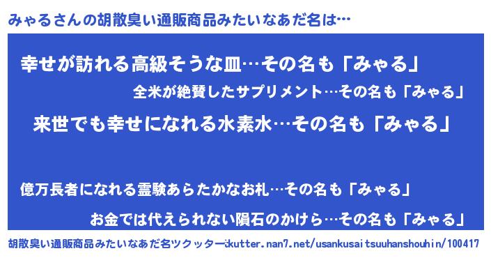 | 胡散臭っw …「みぅ」 | 4月16日 08:13 |