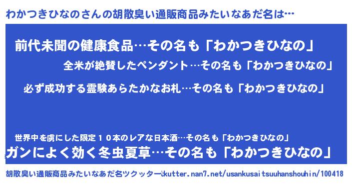 | ヘコむあだ名 | 『わかもー』『わかつきひなの(苦笑)』 |