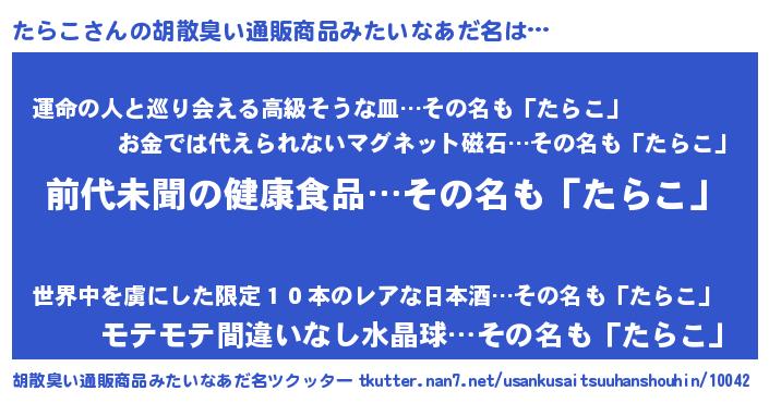 | ヒーロー風カッコイイあだ名 | 『ネオタラコ』『ウルトラたらこマン』 |