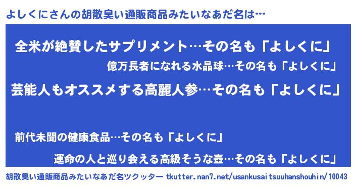 | 意味不明あだ名 | 『自称よしくに』『ヨモギ科よしくに属』 |