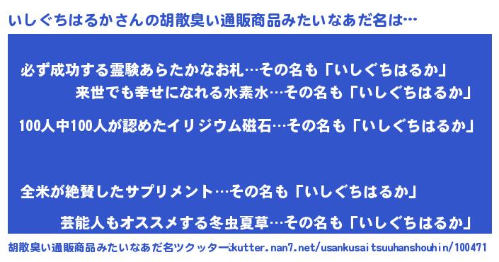 | ヘコむあだ名 | 『いしもー』『いしぐちはるか(遠い目)』 |