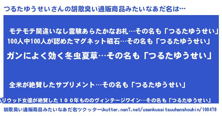 | 意味不明あだ名 | 『自称つるたゆうせい』 |