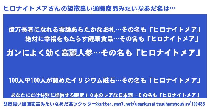 | 意味不明あだ名 | 『自称ヒロナイトメア』 |