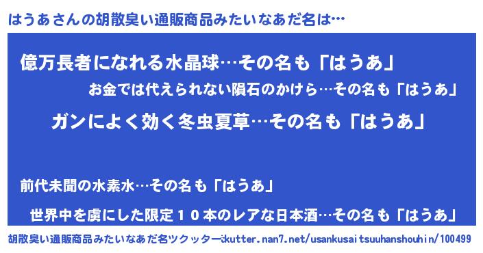 | 伝説のあだ名 | 『伝説のスナイパーはうあ』 |