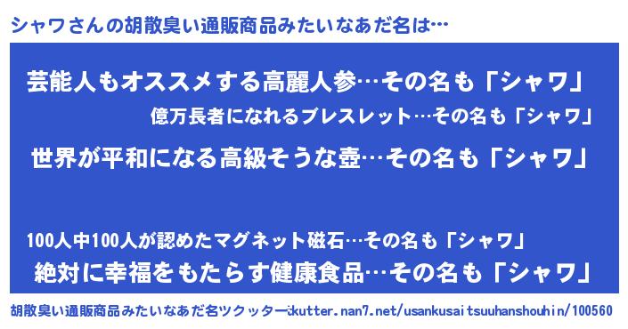 | ヘコむあだ名 | 『なまこ酢』『シャワ(小並感)』 |
