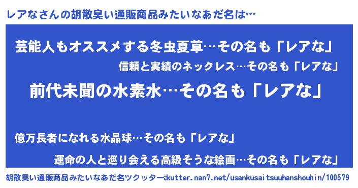 | 意味不明あだ名 | 『永久保存レアな』『自称レアな』 |