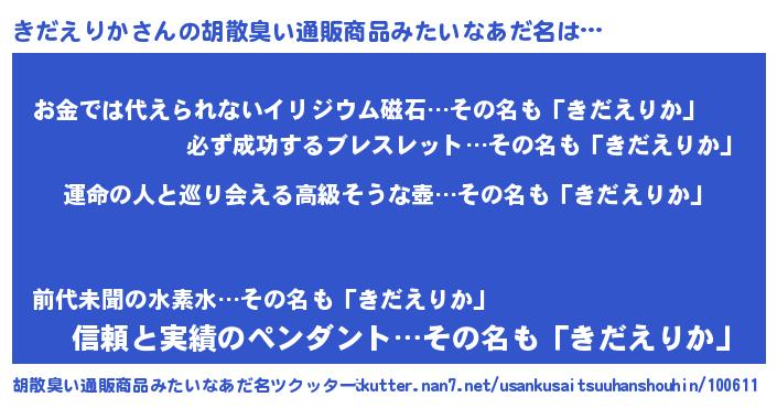 | 肩書あだ名 | 『きだえりか大統領』『きだえりか学校長』 |