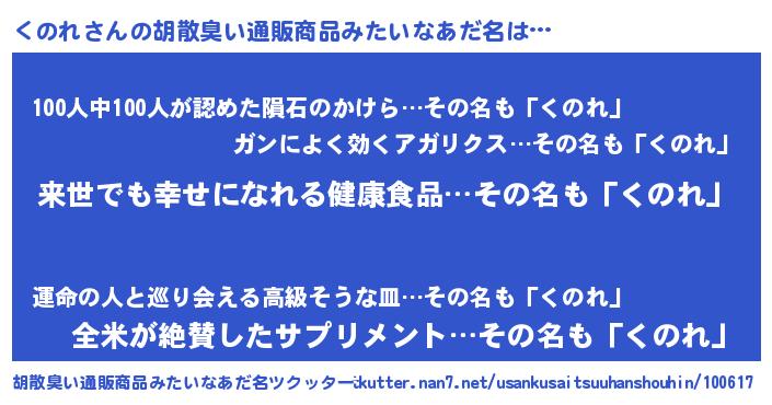 | 意味不明あだ名 | 『永久保存くのれ』『自称くのれ』 |