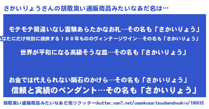 | 意味不明あだ名 | 『さかいりょうフォーエバー』 |