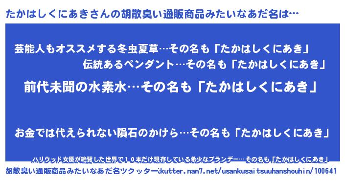 | ヘコむあだ名 | 『たかはしくにあき(震え声)』『たかっぺ』 |