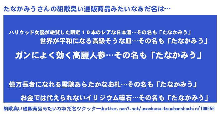 | 女子向けラノベタイトル風あだ名 | 『たなかみうなんてお断りですっ。』 |