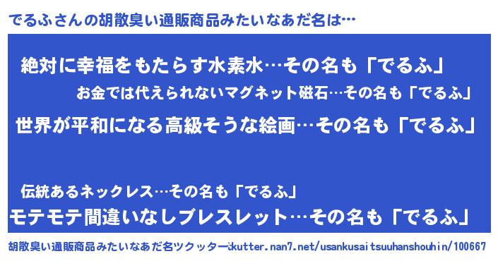 | ヒーロー風カッコイイあだ名 | 『ウルトラでるふマン』『ネオデルフ』 |