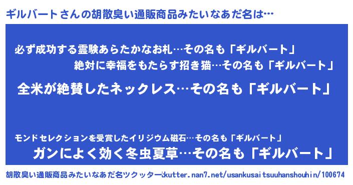| 意味不明あだ名 | 『とにかく怪しいギルバート』 |