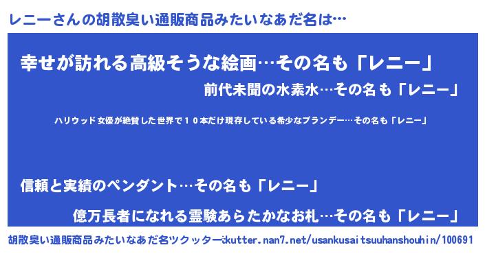 | ヘコむあだ名 | 『つくし』『レニふぇ~』『レニを』 |
