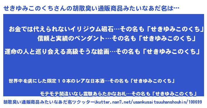 | ファンタジー風あだ名 | 『エターナルセキユミコノクチー』 |
