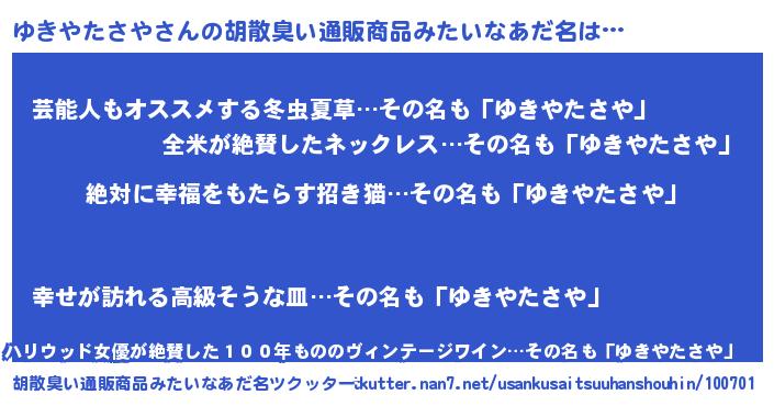 | 伝説のあだ名 | 『聞きしに勝る吟遊詩人ゆきやたさや』 |