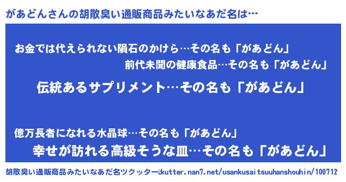 | 男性向けラノベタイトル風あだ名 | 『があどんに滅ぼされるだけの簡単なお仕事です』 |