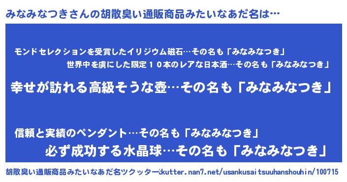 | 伝説のあだ名 | 『秘められし忍者みなみなつき』 |