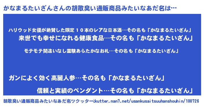 | ヒーロー風カッコイイあだ名 | 『スーパーカナマルタイザン』 |
