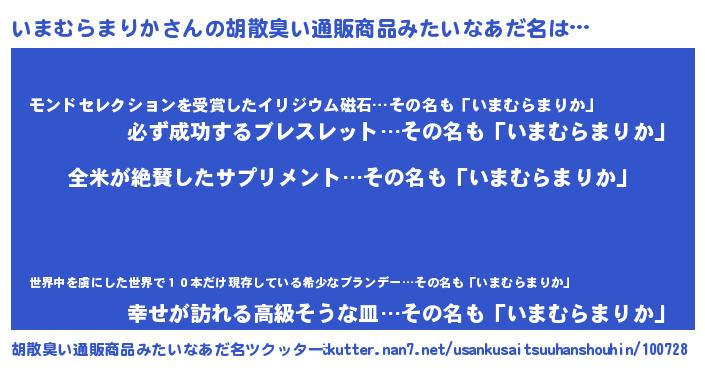 | 意味不明あだ名 | 『とにかく怪しいいまむらまりか』 |