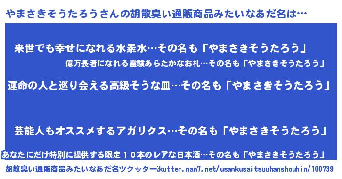 | 男性向けラノベタイトル風あだ名 | 『うちのやまさきそうたろうが世界を掌握している!』 |