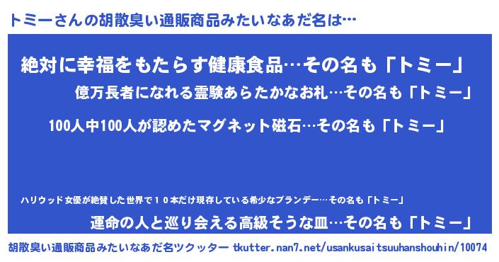 | ヘコむあだ名 | 『トミー(笑)』『つくし』『トミもー』 |