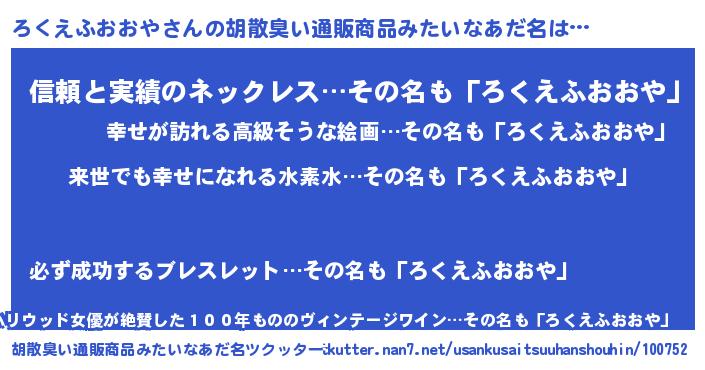 | 意味不明あだ名 | 『永久保存ろくえふおおや』 |