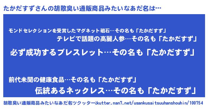 | 男性向けラノベタイトル風あだ名 | 『たかだすずの憂鬱』 |