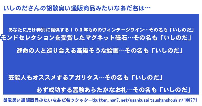 | 意味不明あだ名 | 『いしのだフォーエバー』『自称いしのだ』 |