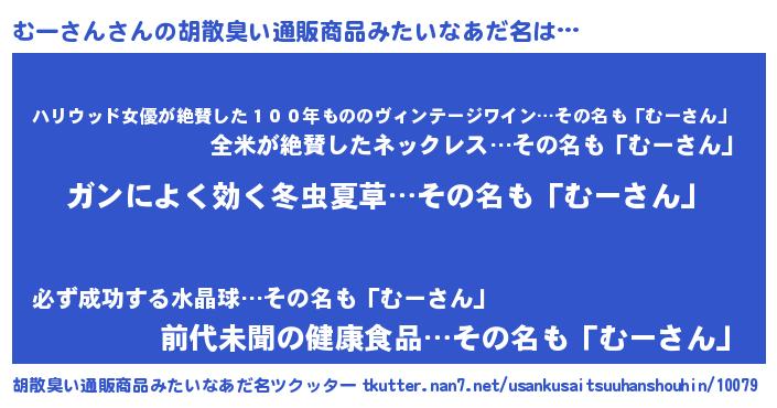 | 女子向けラノベタイトル風あだ名 | 『むーさんなんてお断りですっ。』 |