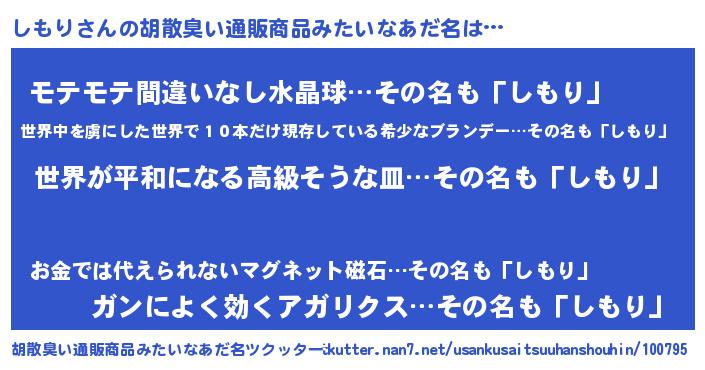 | 意味不明あだ名 | 『しもりフォーエバー』『ペロリンしもり』 |