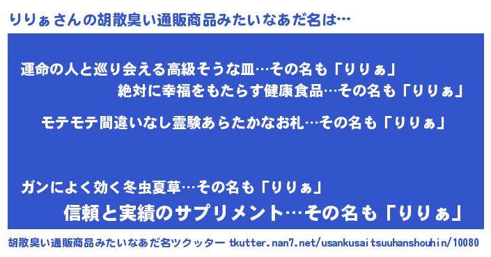 | 男性向けラノベタイトル風あだ名 | 『りりぁの憂鬱』『リリァスレイヤー』 |