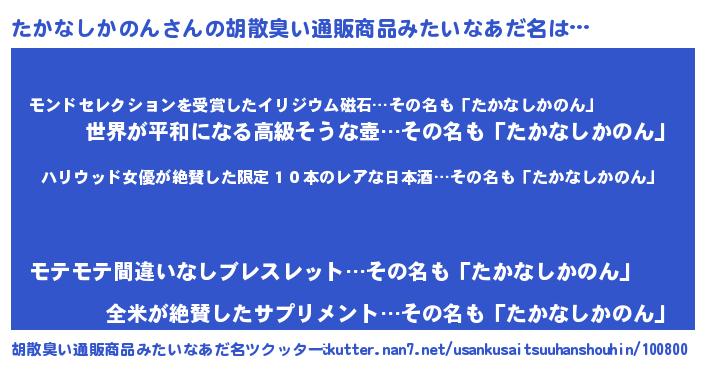 | 意味不明あだ名 | 『住所不定無職たかなしかのん(50歳)』 |