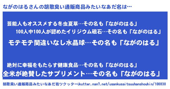 ながのはるさんの胡散臭い通販商品みたいなあだ名をツクッター!