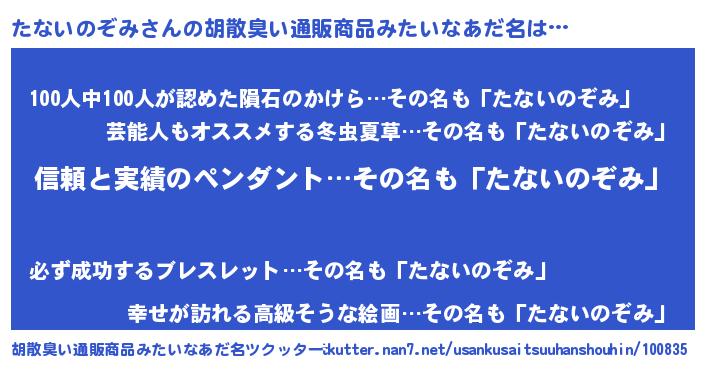 | 意味不明あだ名 | 『とにかく怪しいたないのぞみ』 |