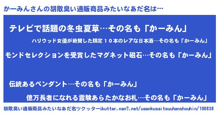| 意味不明あだ名 | 『眠気覚ましガムかーみん味』 |