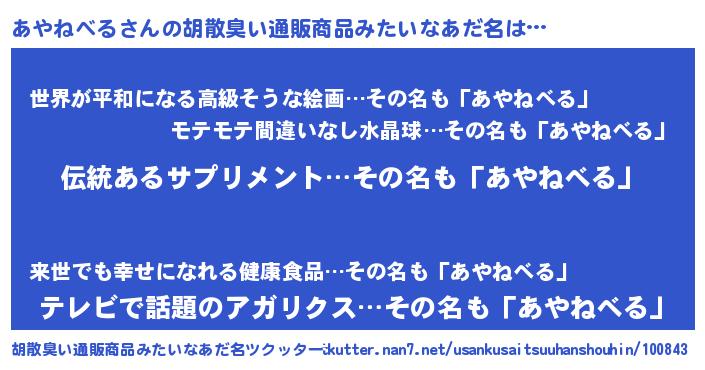 | 意味不明あだ名 | 『とにかく怪しいあやねべる』 |