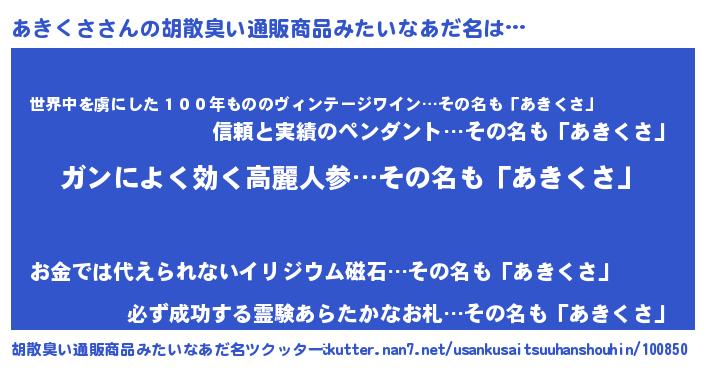 | 女子向けラノベタイトル風あだ名 | 『あきくさなんてお断りですっ。』 |